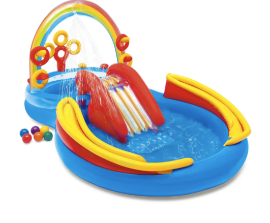 - Incluye: 1 tobogán con base acolchada para amortiguar la bajada, 4 anillos inflables y encajables, 6 bolas de PE blando deformables y tapón de drenaje