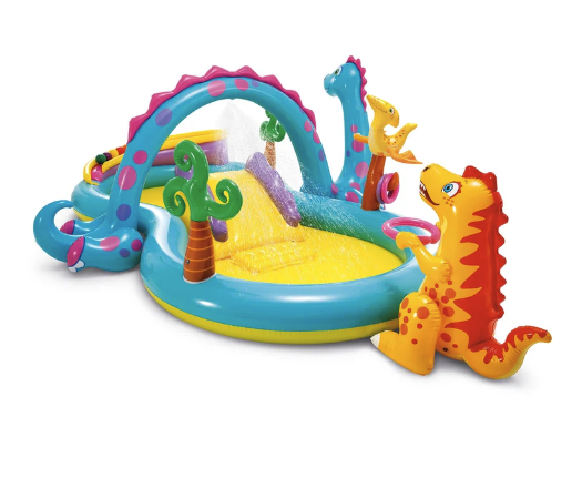 ¿Qué niño puede resistirse a una divertida piscina con tobogán y juegos? Ahora puedes hacer realidad el sueño de tus hijos montando este centro de juegos inflable de dinosaurios en tu propio jardín, terraza o patio.