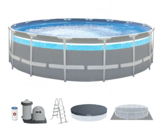 - Piscina tubular Prism Frame redonda con diámetro 488 cm y una altura de 122 cm es ideal para el jardín, el patio o la terraza de tu hogar.