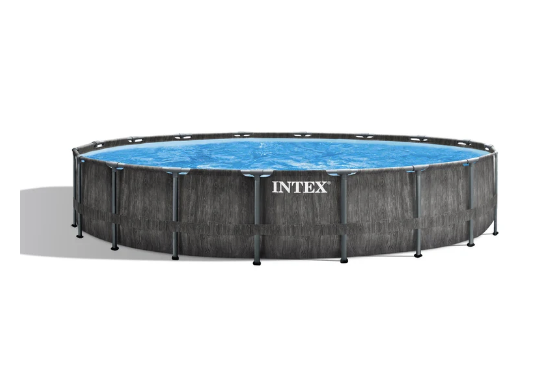 Piscina Estructural Redonda INTEX Prism Frame Greywood, 5.49 x 1.22m, 24.311L, con Bomba, Escalera, Cobertor y Tapiz